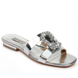 Badgley Mischka Silver Josette Flat Metallic Slide Sandals$40Houston, TX