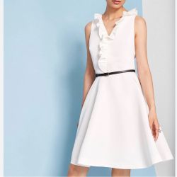 Ted Baker London Ivory Qwinn ruffled Twill V-Neck Front Skater Dresss$90Houston, TX
