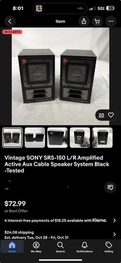 Vintage Sony SRS-150 L/R Amplified active auxiliary cable speaker system, black tested and approved$60Farmington, MI