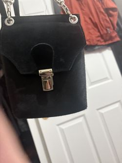 Crosstree Lane black calf hair and suede crossbody bag with a metal clasp closure.$10Modesto, CA