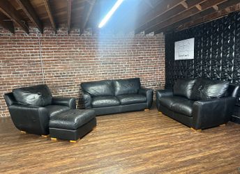 Delivery available Thomasville leather black sofa/couch, loveseat, + chair w ottoman$380Sacramento, CA