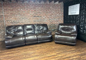 Delivery Available brown recliner leather sofa couch + chair$299Sacramento, CA