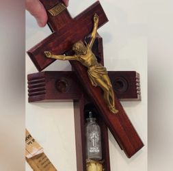 DIVINITY Crucifix Sick Call Set JESUS HEAL Wood Cross Original Antique Fine Art$222San Diego, CA