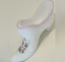 FENTON Fine Art Satin Glass Shoe Slipper Boot Figurine Orig Vintage CABBAGE ROSE$59San Diego, CA