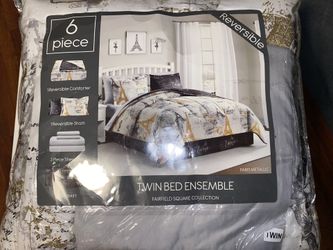 Paris Gold Eiffel Tower Twin Comforter 6pc set Blk/wh/gold reversible New$40Ontario, CA