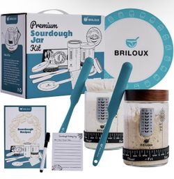 Sourdough Starter Jar Kit: Complete Sourdough Bread Baking Supplies Set with 2 Packs 34oz Glass Jars, Thermometers, Natural Wood Lids, Silicone Mats, $18Hawthorne, CA