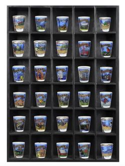 Tasse Verre 30 Shot Glass Shelf Display Case (2-Pack) - Large Wooden Collectibles Rack - Wall Mounted Black Bar Shadow Box Minifigure Storage, 16.7x12$30Torrance, CA