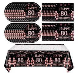 41Pcs 80th Birthday Decorations for Women, Vintage 80 Birthday Black and Rose Gold Disposable Paper Plates and Napkins Party Supplies for 20 Guests, 4$10Lawndale, CA