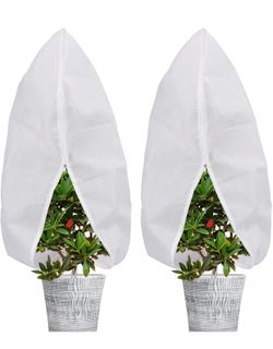 Abimars Plant Covers Freeze Protection Jacket 1.77 oz/yd², 3.2ft x 3.2ft Reusable Winter Plant Covers with Drawstring & Zipper, 2 Pack Light, Porous F$12Lawndale, CA