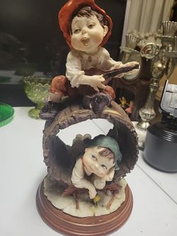 Vintage Capodimonti Style Porcelain Figurine, Boys Playing on Barrel, 12" high.$25Montgomery, WV