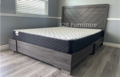 Queen Size Grey Platform With Orthopedic Mattress $299San Bernardino, CA