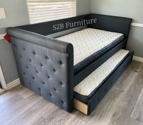 Full Twin Grey Frenchi Trundle Bed With Ortho Mattress Included $479Hesperia, CA