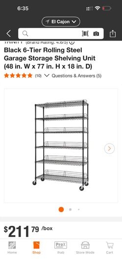 Black 6-Tier Rolling Steel Garage Storage Shelving Unit (48 in. W x 77 in. H x 18 in. D)$100El Cajon, CA