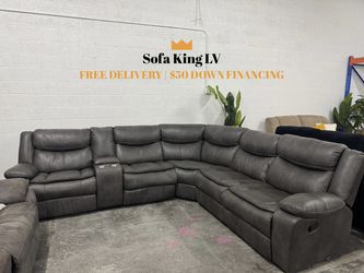 Free Delivery* Like New Gray Faux Leather Sectional Sofa with Recliners!$875Las Vegas, NV
