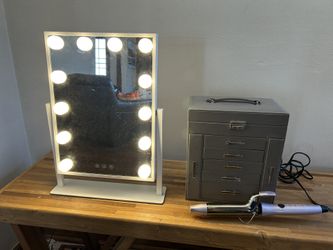 Vanity Mirror With Lights, Jewelry Storage Box And Curling Iron$20Highland Hills, OH