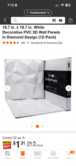 3 -D Wall Panel (Each box is 32 Sq. Ft.)$25Phelan, CA