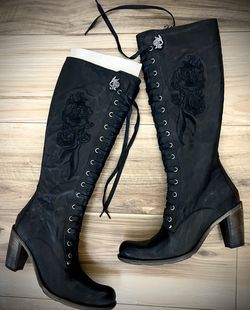New Freebird by Steven Carson Black Leather Distressed Heeled Boots Size 6$400Largo, FL