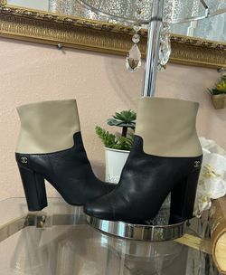 AUTHENTIC CHANEL Black And Taupe Leather Ankle Boots Size 39.5$750Largo, FL