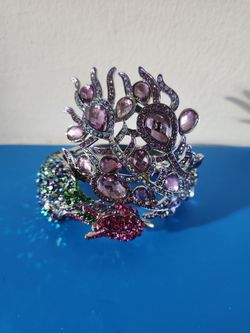 Large Bold Lavender Couture Multicolor Rhinestone Peacock Bird Cuff Bracelet$35Detroit, MI