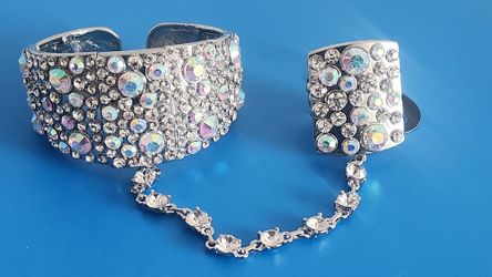 Silver/Iridescent Rhinestone Cuff Bracelet with attached Ring$40Detroit, Michigan