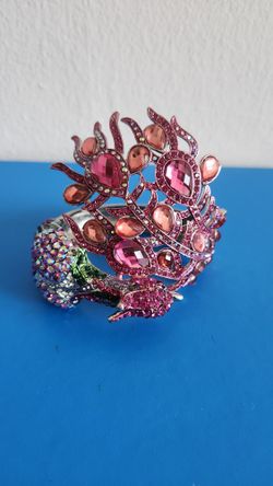Large Shades of Pink Multicolor Rhinestone Couture Peacock Bird Cuff Bracelet$35Detroit, MI