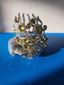 Large Bold Couture Yellow & Iridescent Rhinestone Peacock Bird Cuff Bracelet$35Detroit, MI