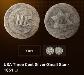 3 Cents U.S Silver Coin 1850s David Star Back $100San Francisco, CA
