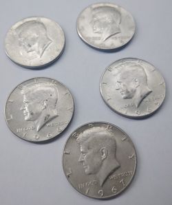 Lot 5 Half Dollar 40% Silver Coins 1960s Kennedy $120San Francisco, CA