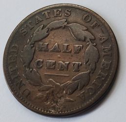 1835 Half Cent Penny Coin U.S Classic Head Copper$120San Francisco, CA