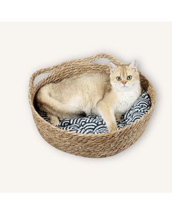 Woven Cat Bed for Indoor Cat,Straw Cat Nest- Wicker Bed for Cat/Dog/Pet with Cushion, Pillow, and Bamboo Mat - Handmade Cat House - Large Cat Basket B$20Corona, CA