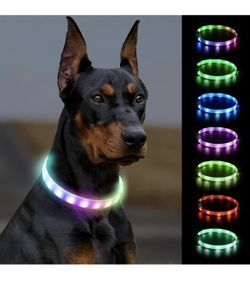 Light Up Dog Collar, Rainproof LED Dog Collar Rechargeable, 9 Flashing Modes, Glow Collars for Night Walking, Cuttable Soft Silicone Collar for Large $8Corona, CA
