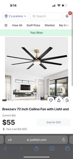Breezary 72 inch Ceiling Fan with Light and Remote, 8 Reversible Blade$80Sacramento, CA