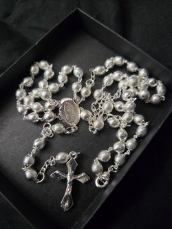 ✝️ 6mm. Silver Rosary Necklace – 26” Virgin Mary Cross$120Anaheim, CA