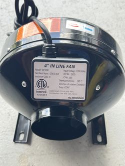 4” Inline Duct Fan – 135 CFM – Model BP-100 – Works Great$30Haines City, FL