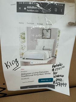 Abbyson Living Palisades Traditional King Bed White $599Bull Valley, IL