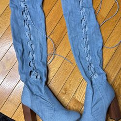 Denim Over The Knee Side Lace Up Boots Size 8$20Huntingtown, MD