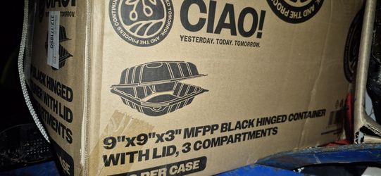 9"x9"x3" MFPP black hinged food containers with lid, 3 compartments.
