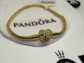 Pandora Moments Sparkling Golden Plated Heart Claps Snake Chain Size 7.9 Inches 20 Cm$79Orland Park, IL