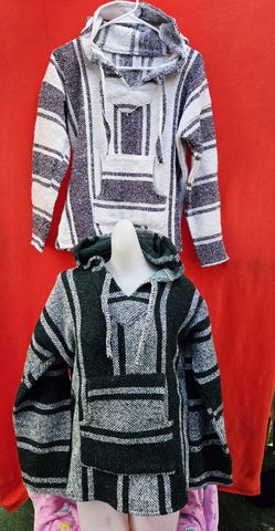 Vintage Lot Of Two Mexican Green/ White Knit Poncho Hoodie Pullover Rug Size Medium