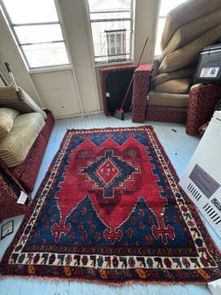 5x7 : Vintage Hand Woven Wool Rug with Geometric Patterns$300Worcester, MA