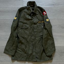 TRUE VINTAGE 1964 VIETNAM ERA U.S. ARMY OG-107 UTILITY SHIRT SP5 SPECIALIST 5 PATCH 13.5x31 SMALL$100Montclair, CA