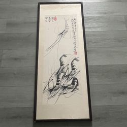 LARGE TRADITIONAL CHINESE INK SHRIMP PAINTING — HAND PAINTED SCROLL — FRAMED — 47” x 18.25”$100Montclair, CA