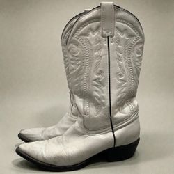 VINTAGE BLACK BULL MEXICAN COWBOY BOOTS WHITE LEATHER LINEA H 1981 WESTERN$125Montclair, CA