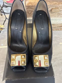 BCBG Black Leather Heels Gold Buckle Size 10 $75El Segundo, CA