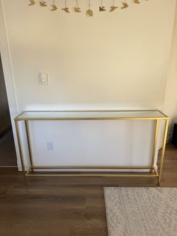 Modern Contemporary Glam Gold Metal And Mirrored Glass Slim Console Table$75Seattle, WA