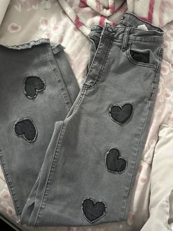 black straight leg baggy jeans with black hearts$20Palmdale, CA
