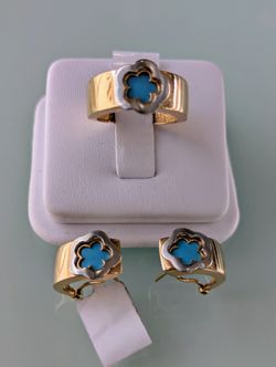 14k White And Yellow Gold Persian Turquoise Ring And Earrings Set$800Culver City, CA