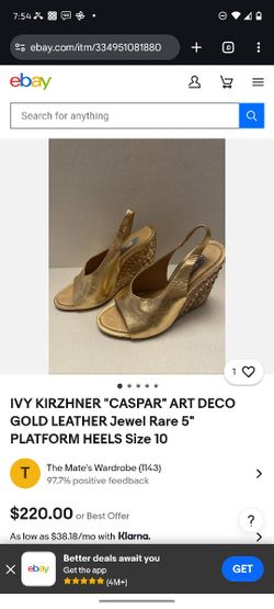 IVY KIRZHNER "CASPAR" ART DECO GOLD LEATHER Jewel Rare 5" PLATFORM HEELS$120San Diego, CA
