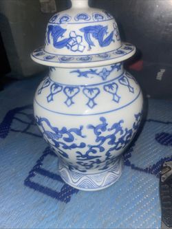 VTG CHINESE BLUE & WHITE PORCELAIN 11” TEMPLE GINGER JAR w LID$75Fresno, CA