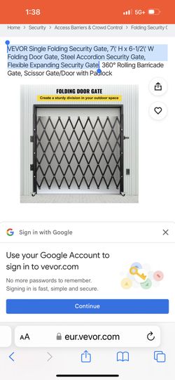 VEVOR Single Folding Security Gate, 7\' H x 6-1/2\' W Folding Door Gate, Steel Accordion Security Gate, Flexible Expanding Security Gate$150Salem, OR
